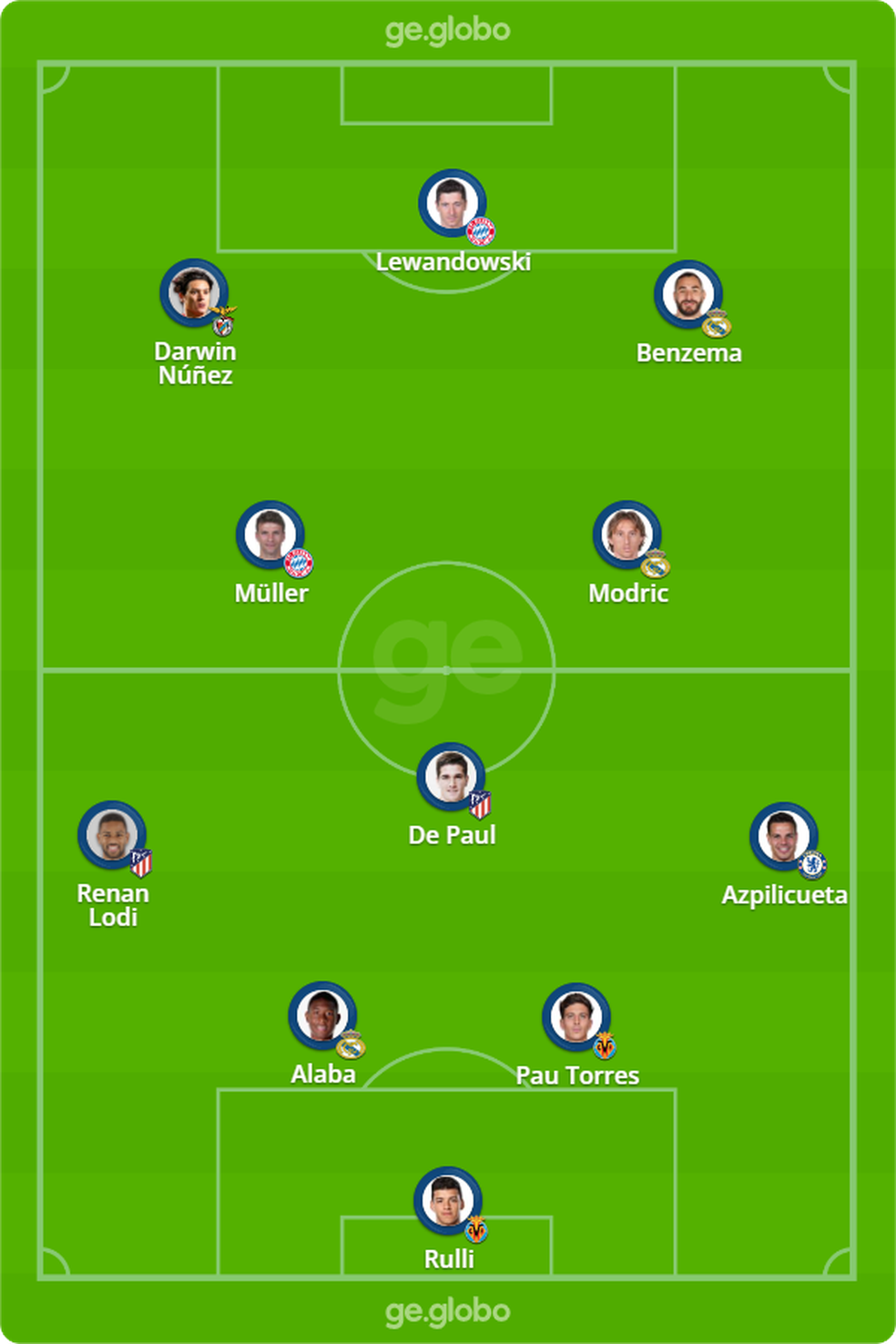 FinalChelsea x quartas -feiras do Real Madrid.Manchester City X Atlético de Madrid.Villarreal x Bayern.Benfica x Liverpool.Existem 32 seleções, divididas em oito grupos com quatro equipes em cada.