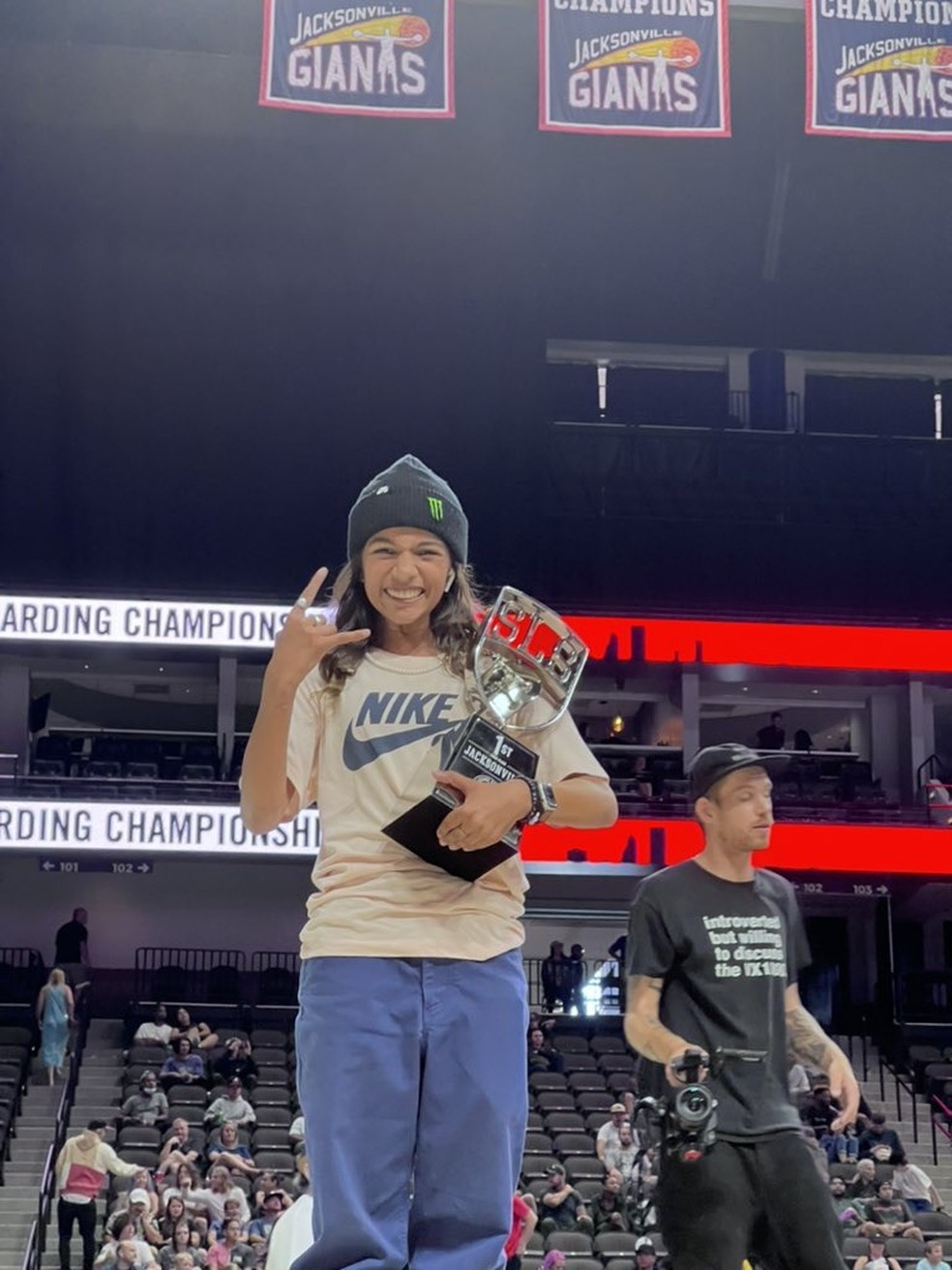 Diante de uma multidão cheia de energia, a menina de 13 anos da Empress, Maranhão, obteve a vitória e US $ 20.000 dólares em dinheiro como prêmio na final do skate da rua feminina. Na final do skate masculino, o skatista de energia monstro e o atual campeão mundial do SLS Nyjah Huston ficou em segundo lugar.Onde assistir a Street League Las Vegas 2022