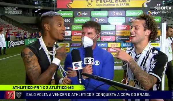 Enquanto a repórter Claudia Mourão falou sobre a precariedade do serviço de água na cidade de Esmeraldas, os fãs do Atlético cantaram "Galo mega", Música que lotou os fãs de Alvinegra na conquista do Campeonato Brasileiro em 2021. Os moradores disseram: ‘Oh, credo, o galão ganhou mais uma vez’.