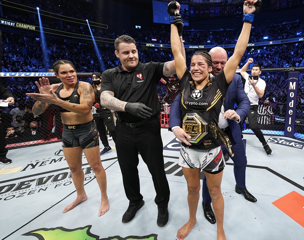 No evento principal do UFC 277, Amanda venceu por decisão unânime (50-45, 50-44, 50-43) depois de sair de Peña "Sangue pingando".